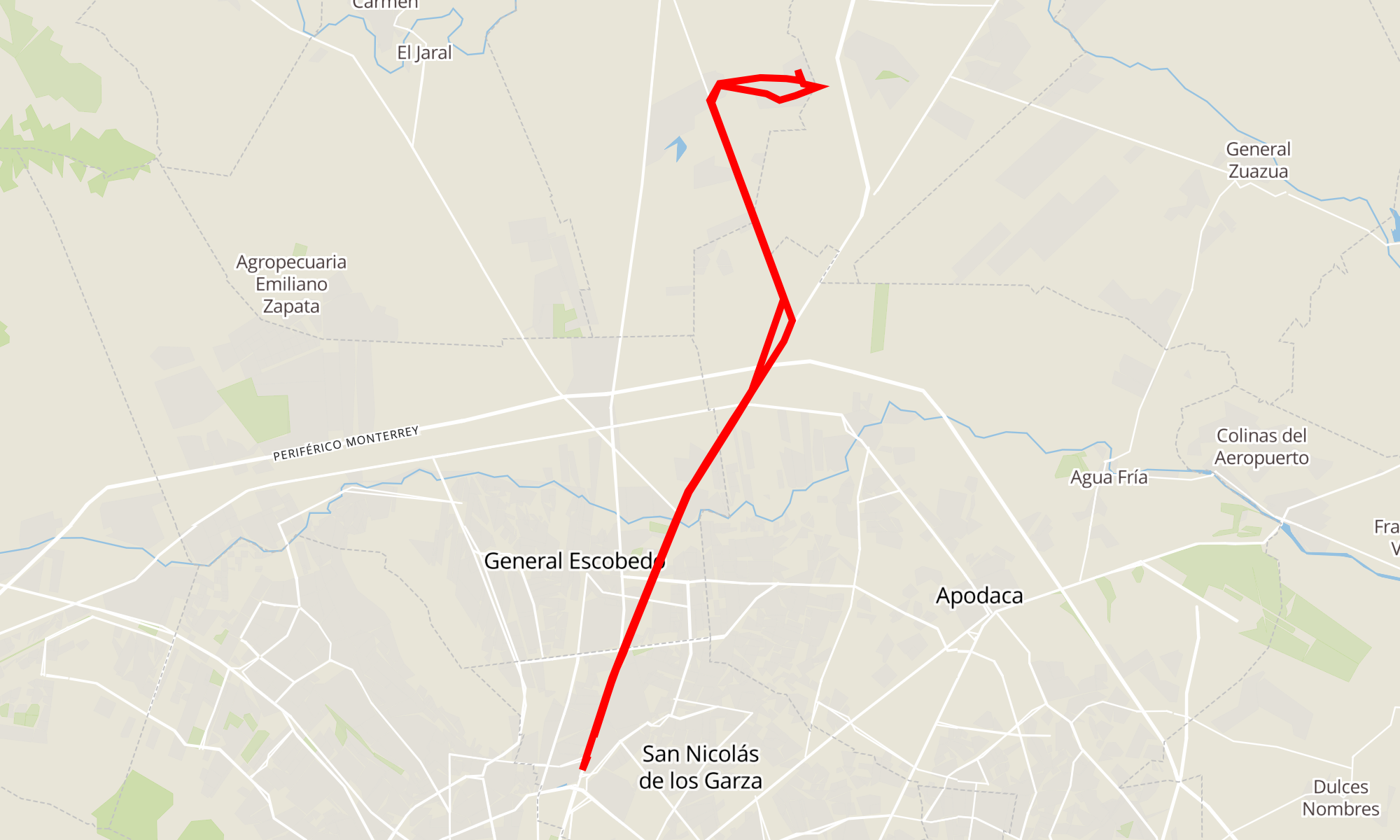 Sentido: Universidad (Saltillo - Linares) ‎→ Universidad (Estación Anáhuac) (68 paradas)