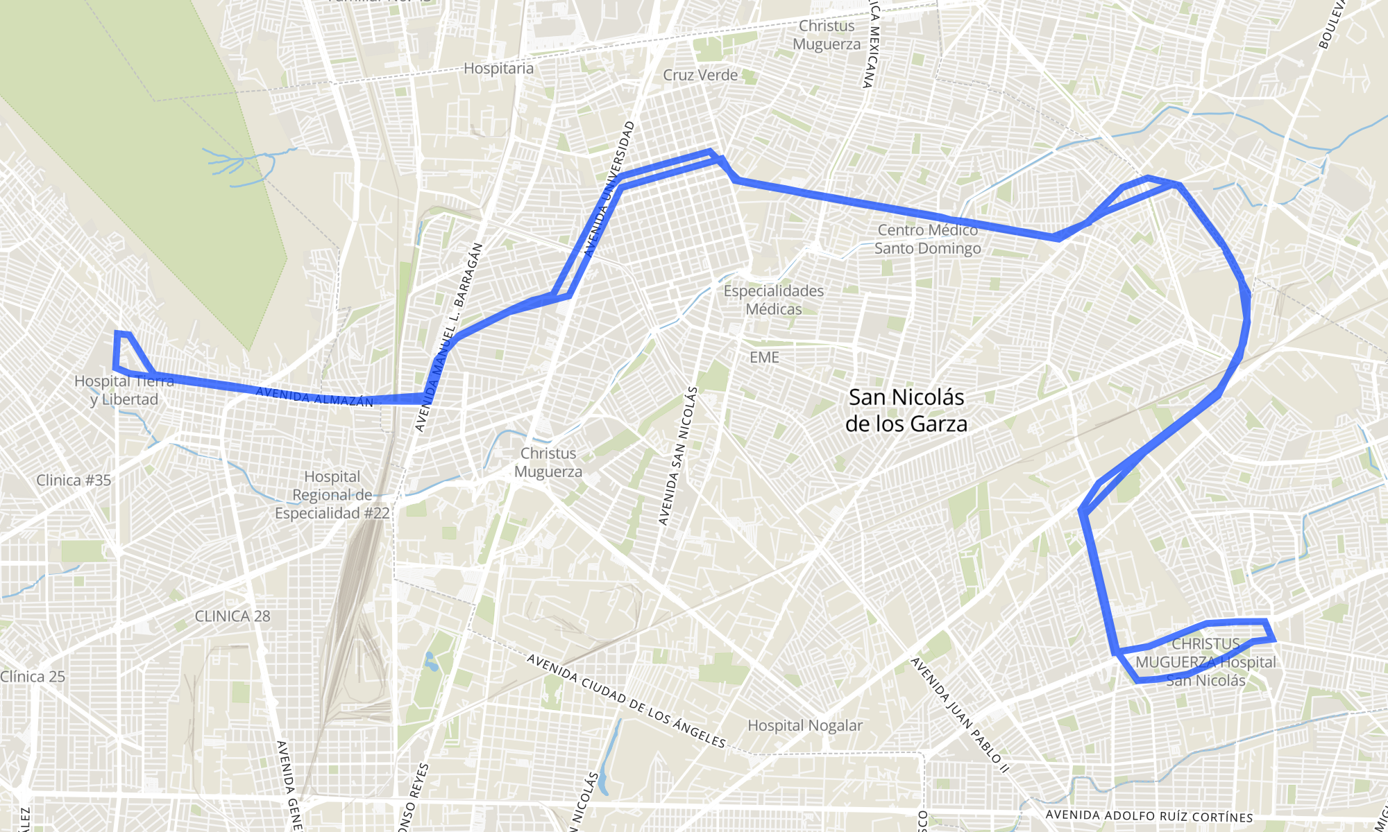 Sentido: Aceros (Maderera - Anillo Periférico) ‎→ Aceros (Fundidora - Maderera) (146 paradas)