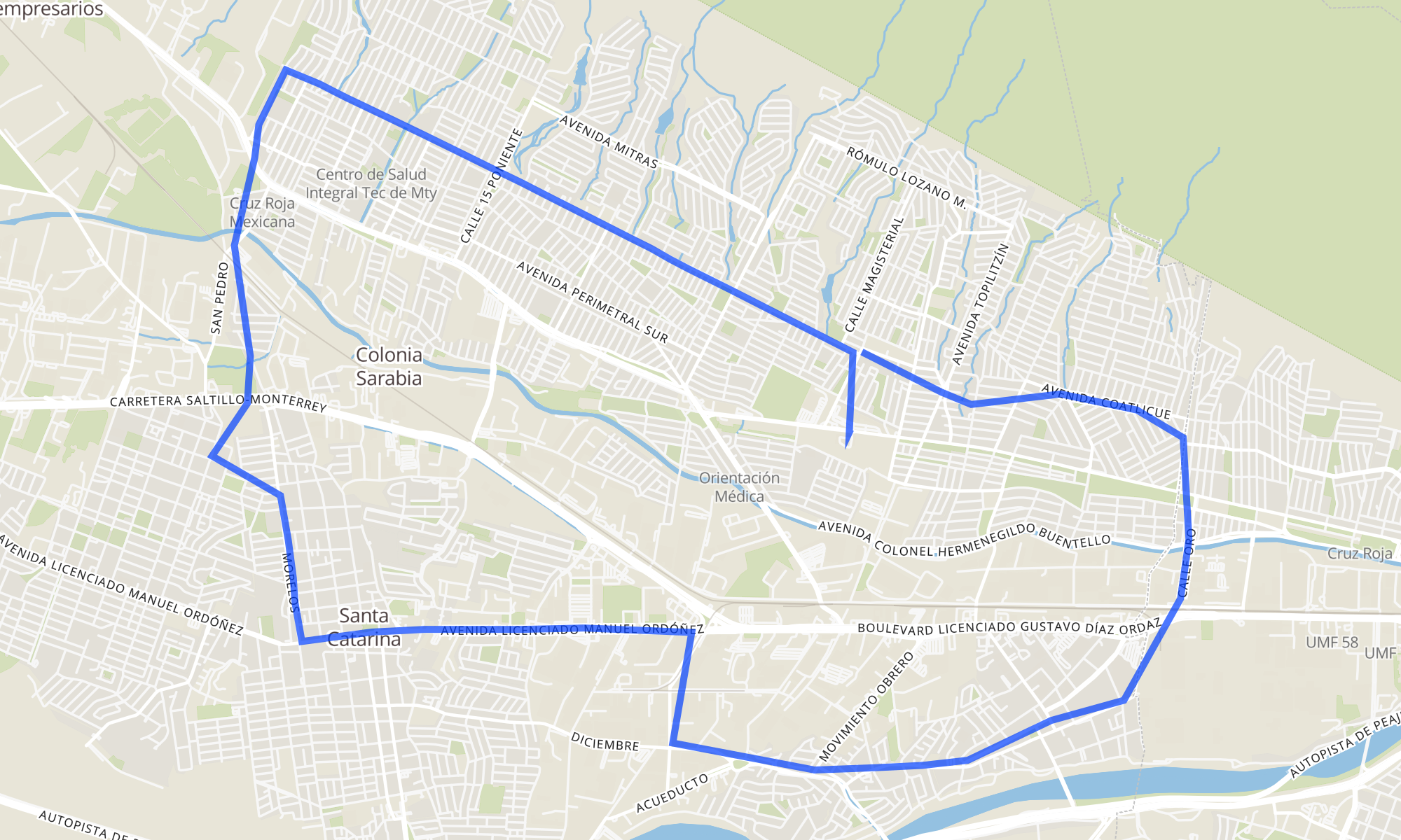 Sentido: San José, 611 ‎→ Manuel J. Clouthier (S-Mart Santa Catarina) (54 paradas)