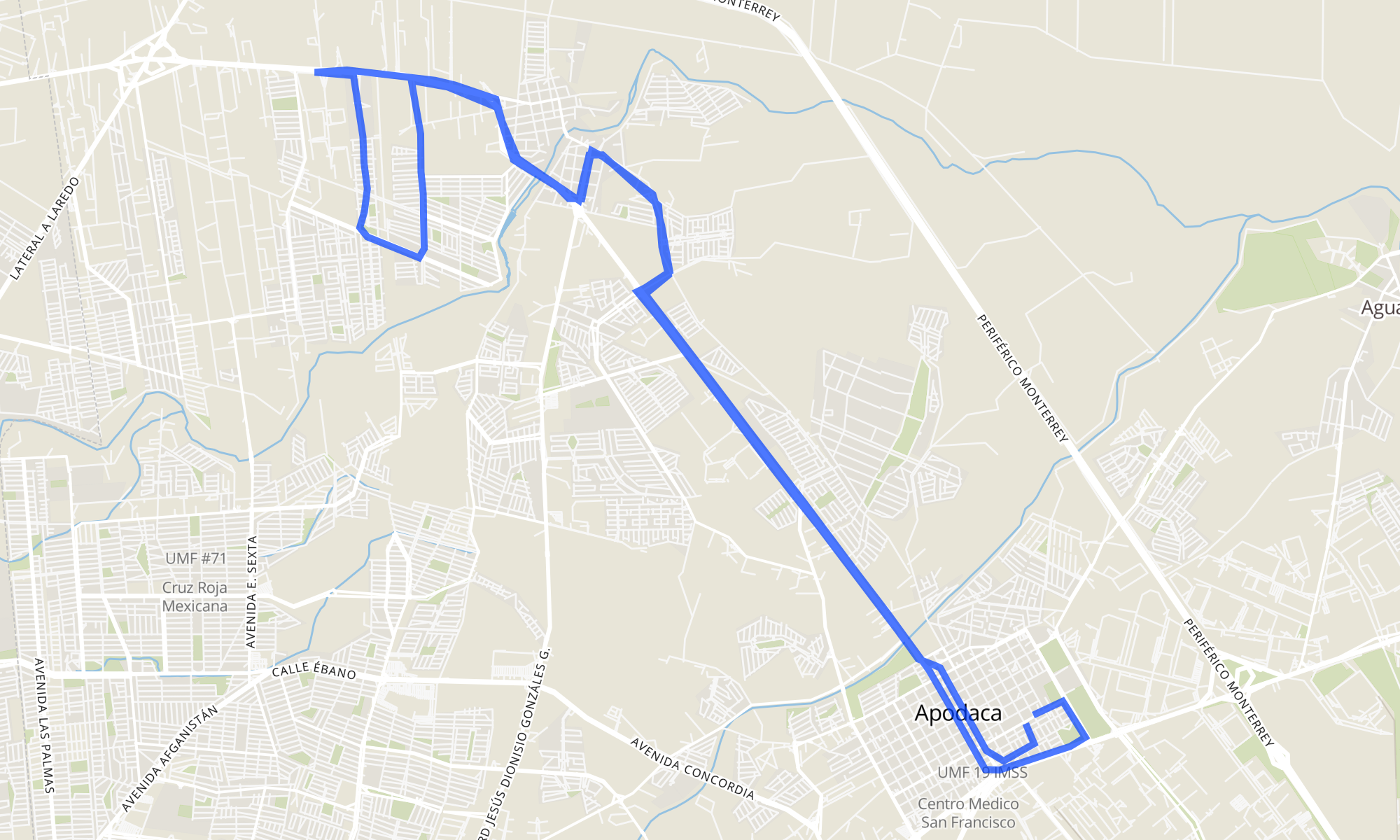 | Chapultepec (Terminal de Grupo Nova) | San Francisco (Abasolo - Garza García) |