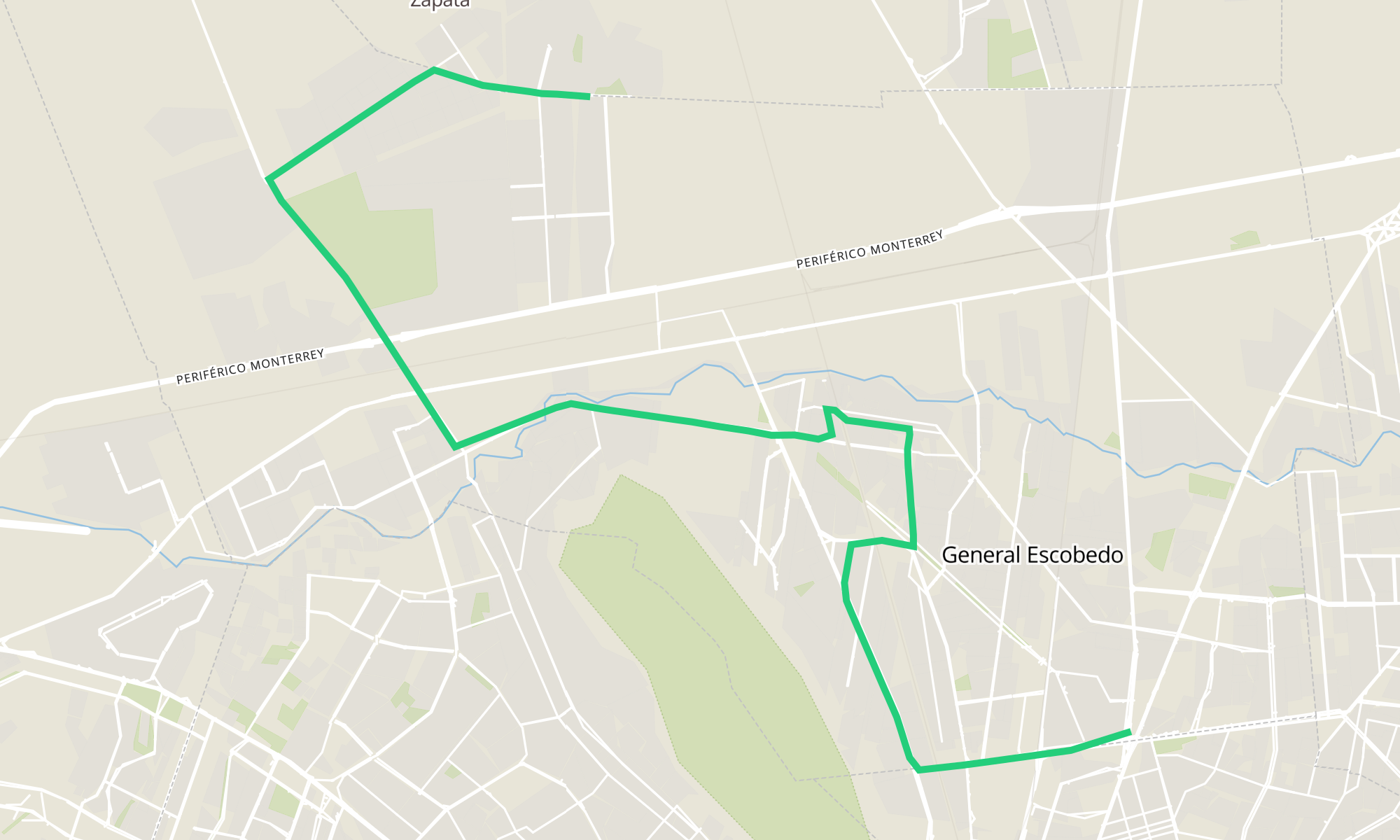 | Sendero Divisorio (Bodega Aurrera Villas de San Francisco) | Carretera A Colombia (Estación Sendero) |