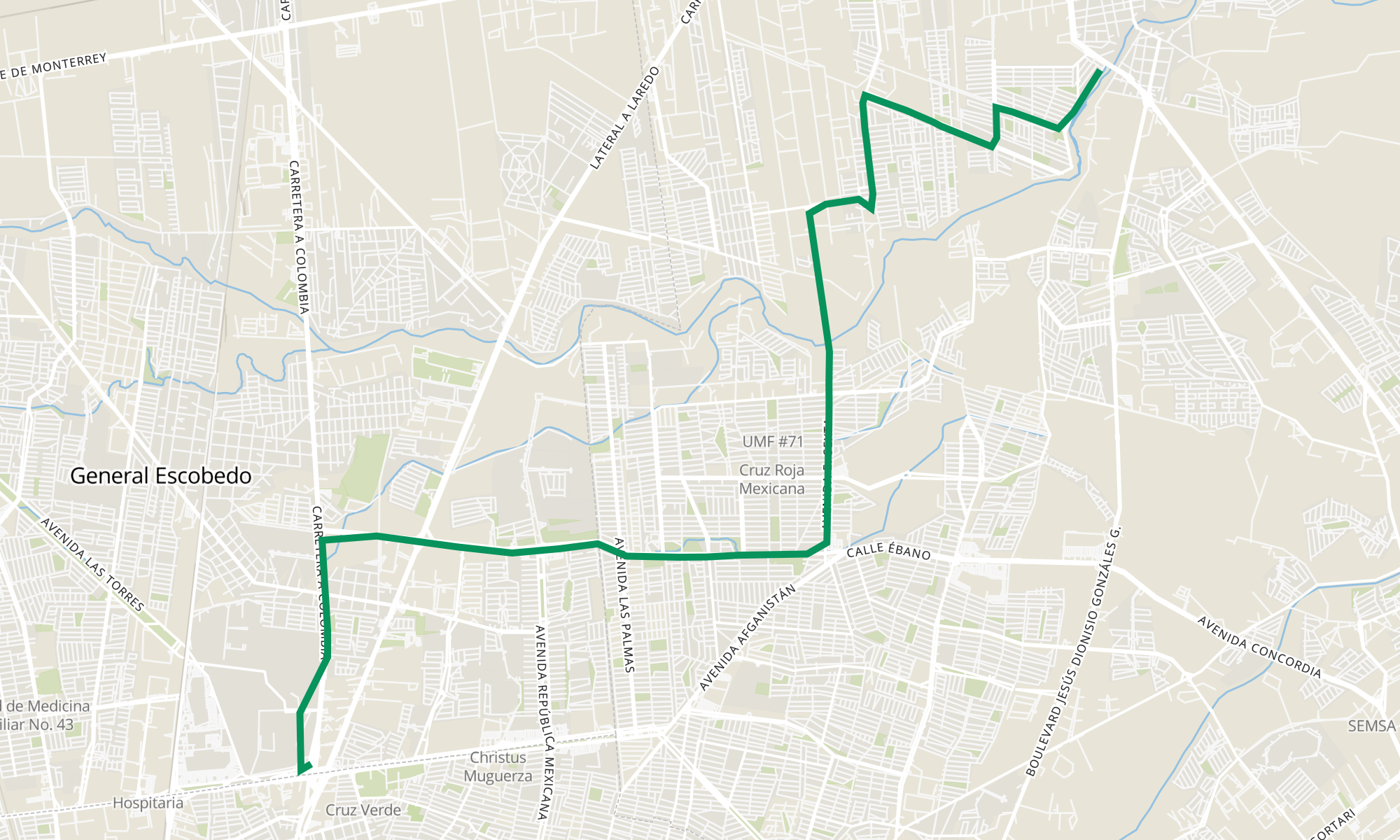| Carretera A Colombia (Transmetro Metroplex) | Río Pesquería (Humberto Ramos Lozano - Tórtola) |
