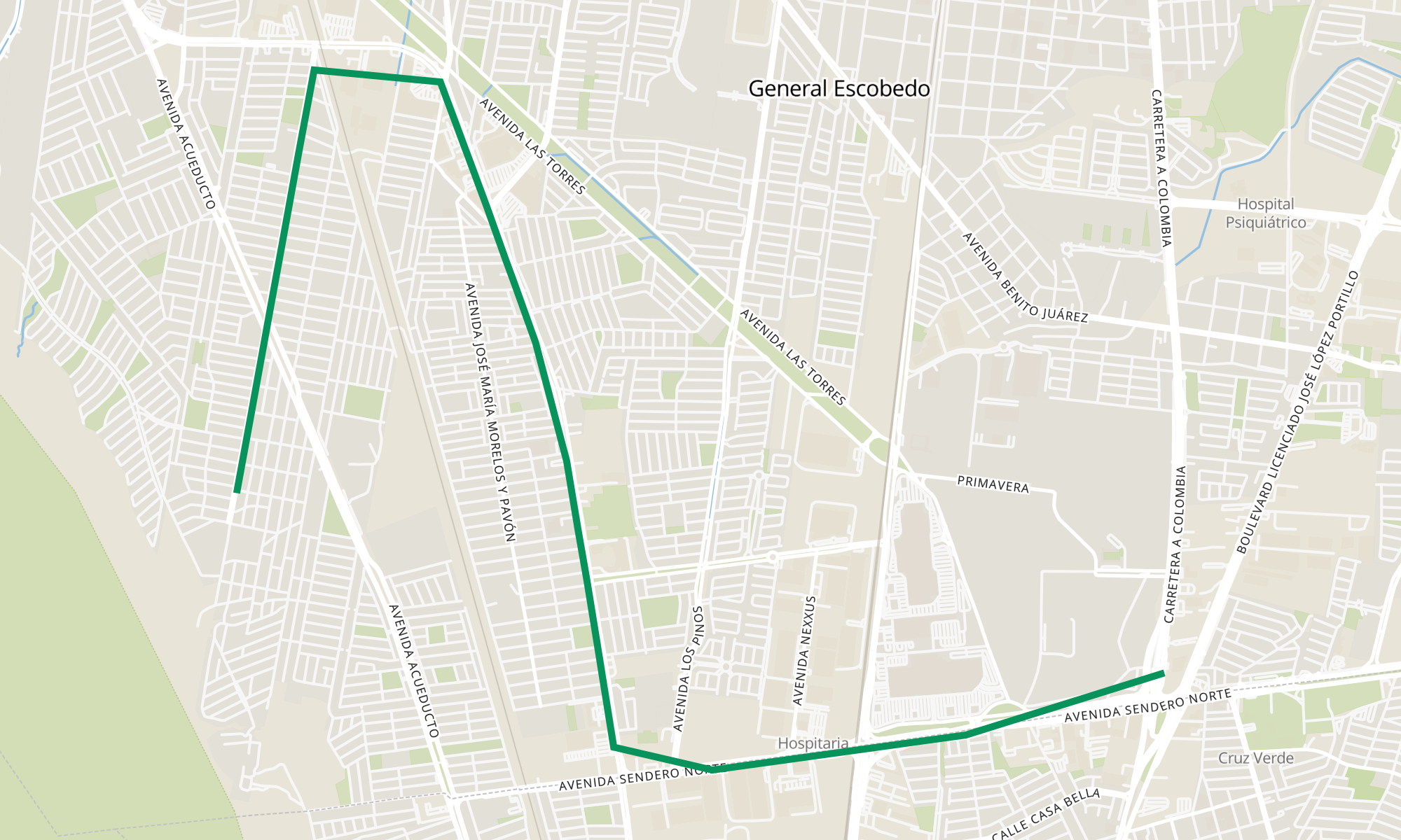 | Plinio D. Ordóñez (Prima Dominical - I.M.S.S.) | Carretera A Colombia (Estación Sendero) |