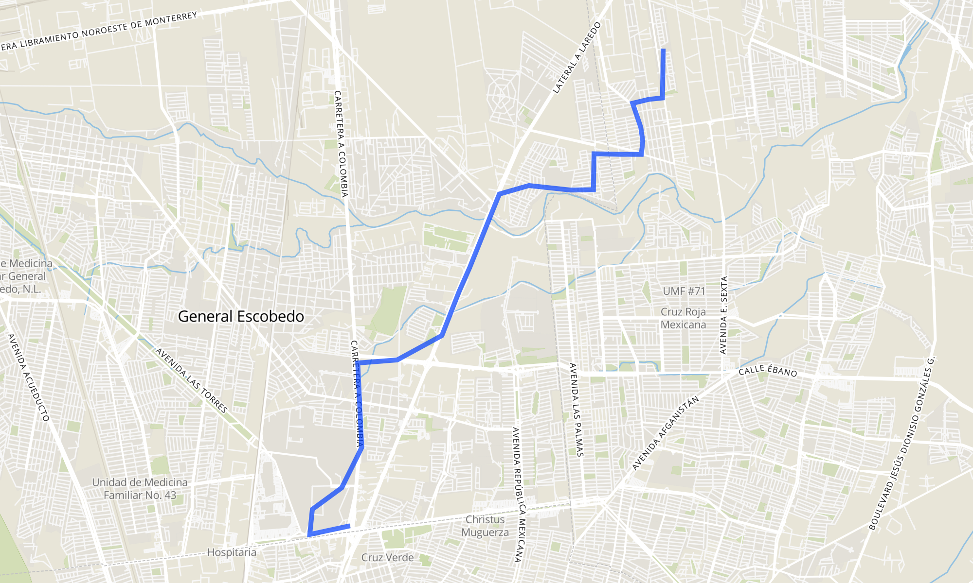 | Carretera A Colombia (Transmetro Fernando Amilpa) | Los Amarantos (Kínder Adelina Zendejas Gómez) |