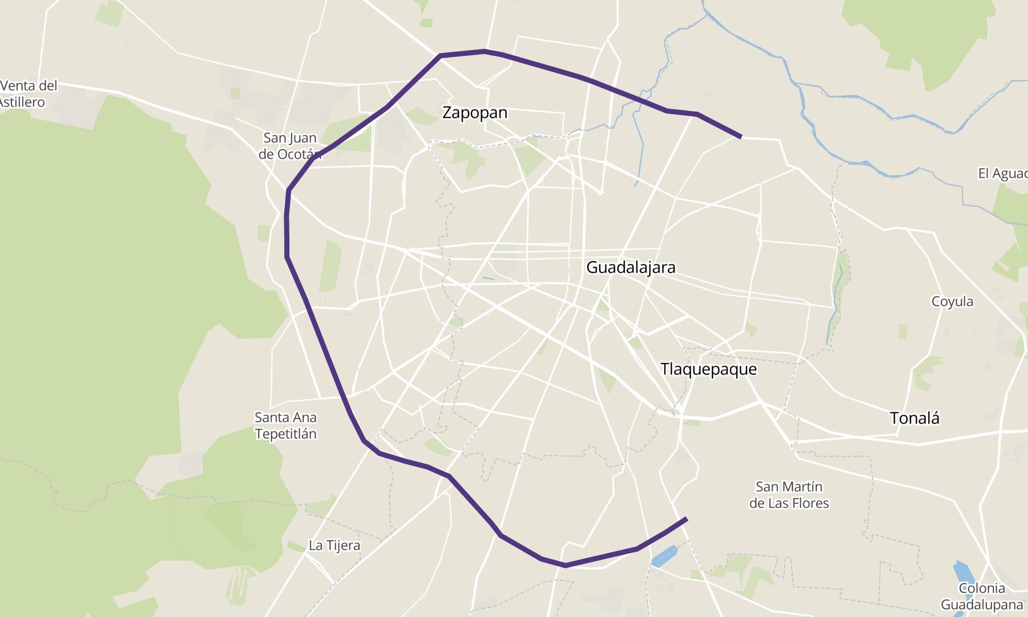 Recorrido de la línea MP-T01: Barranca De Huentitán
