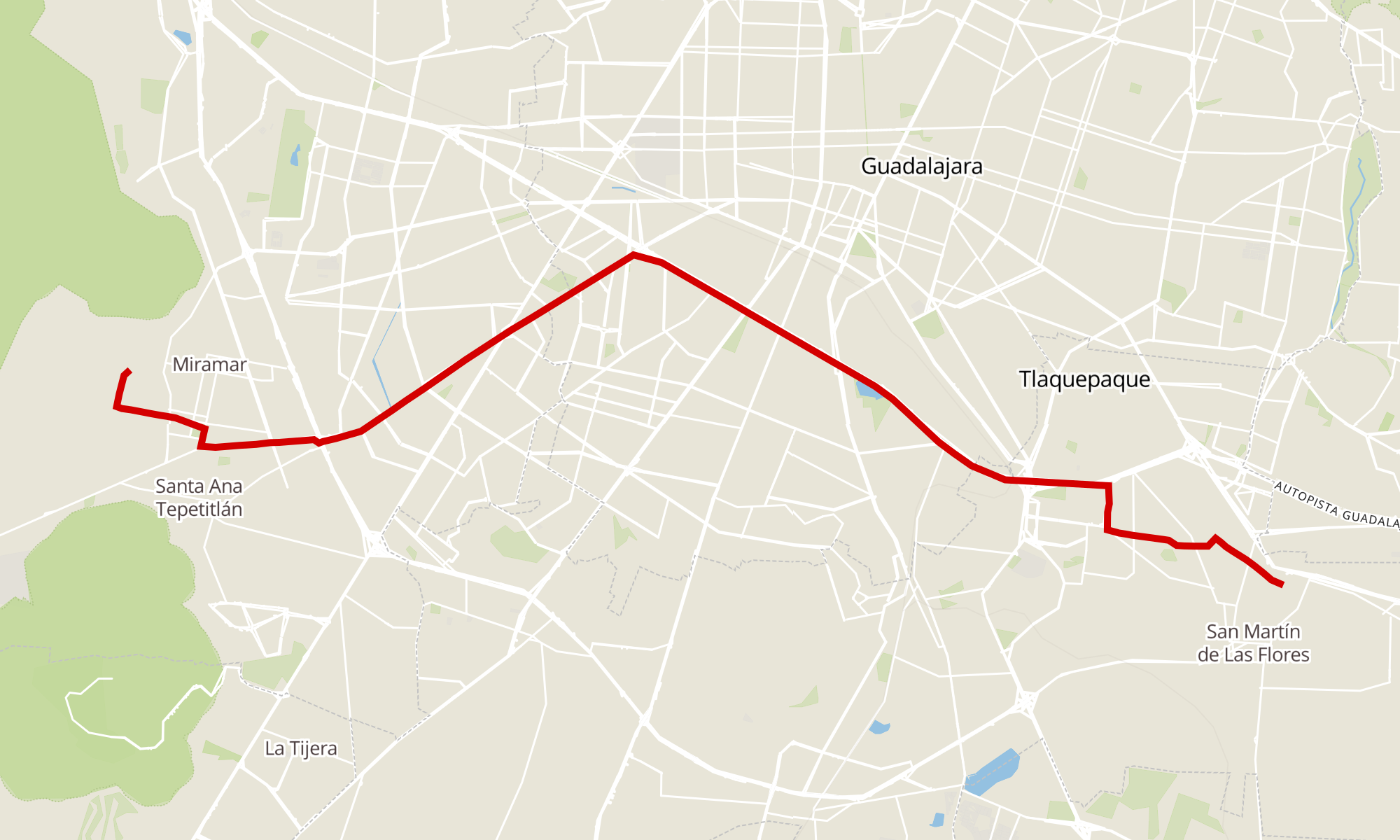 Recorrido de la línea T04B-1: Jardines Tapatíos