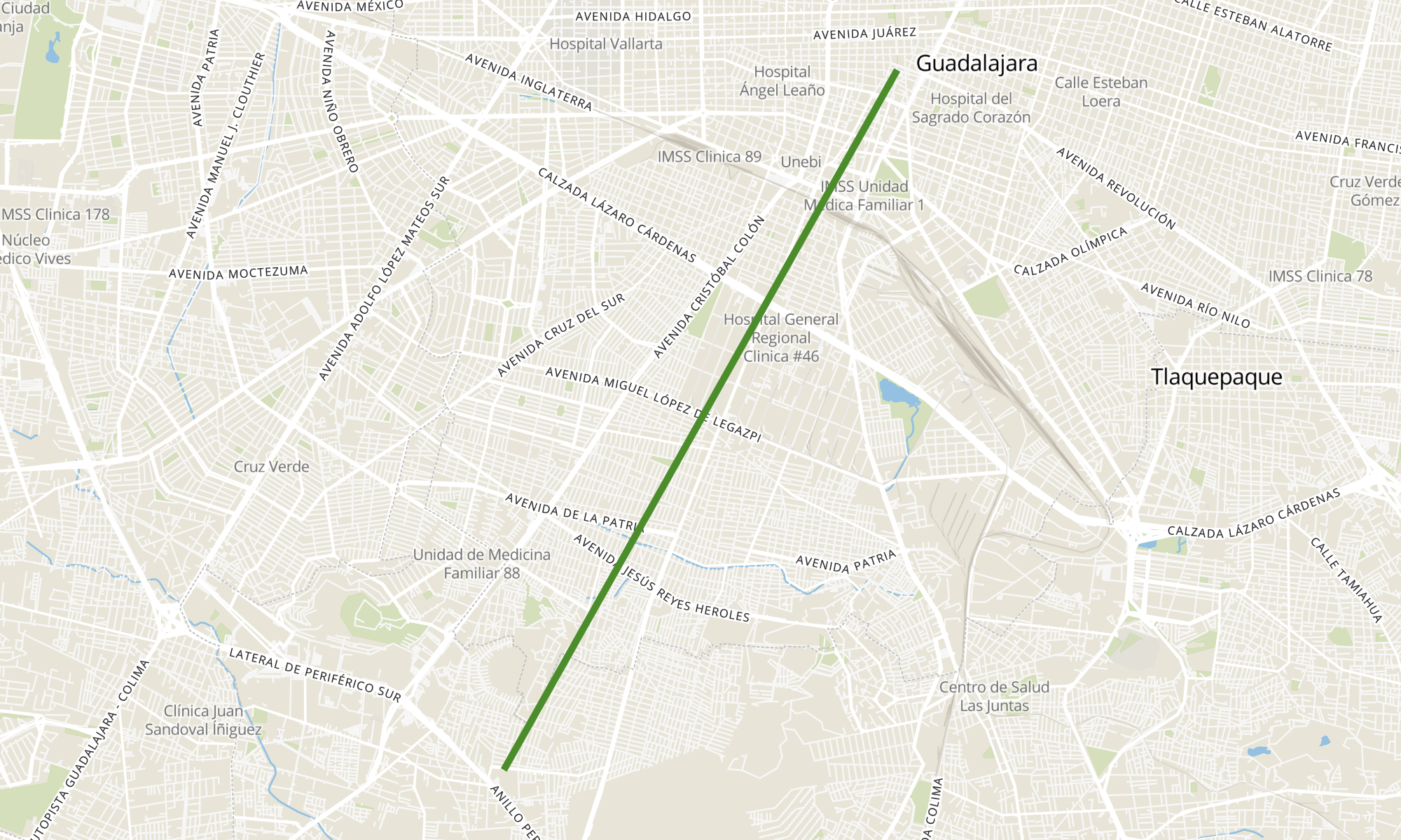 Sentido: Crisantemo ‎→ Ferrocarril (2 paradas)