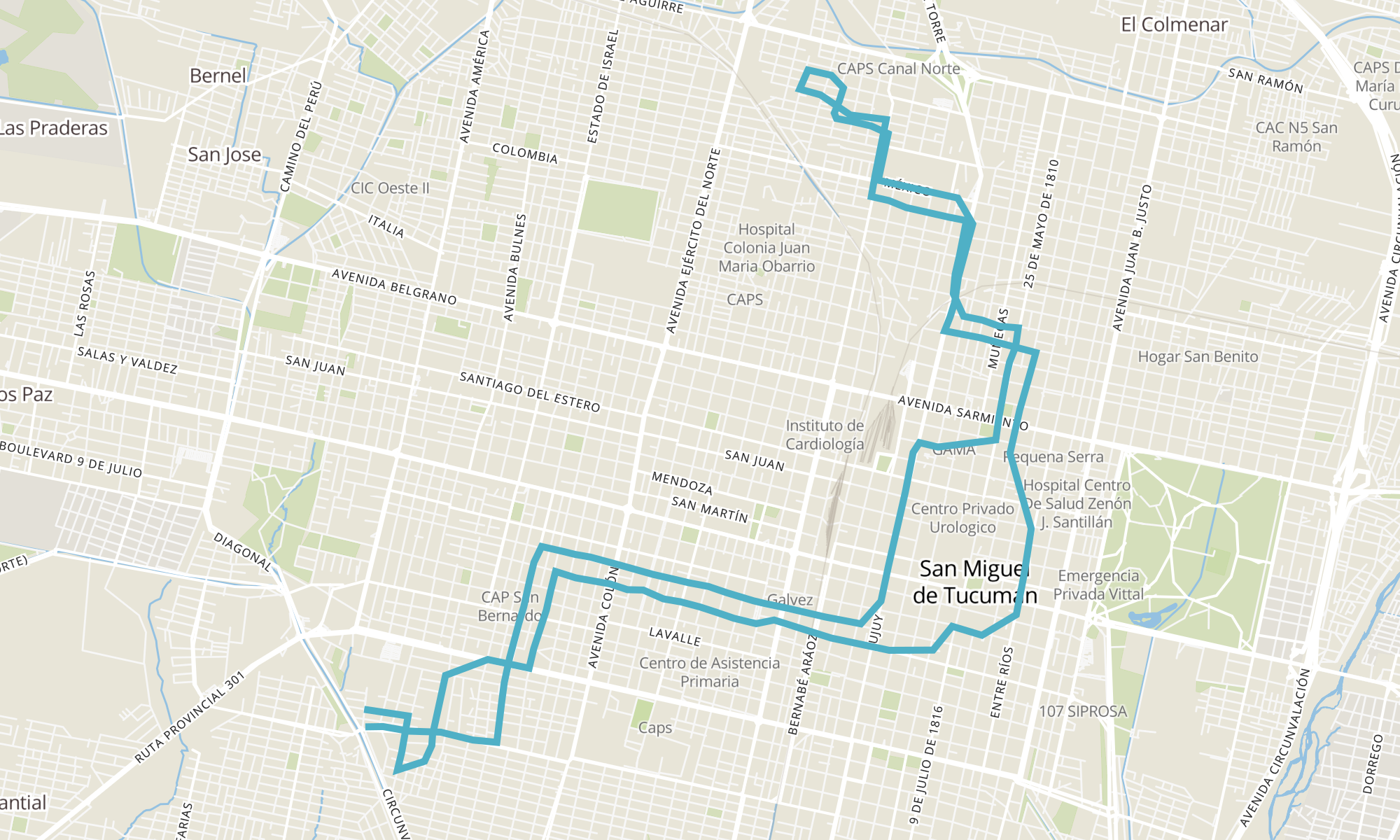Sentido: GORRITI 1287 , San Miguel de Tucumán, Tucumán ‎→ AV. INDEPENDENCIA 3289 , San Miguel de Tucumán, Tucumán (113 paradas)