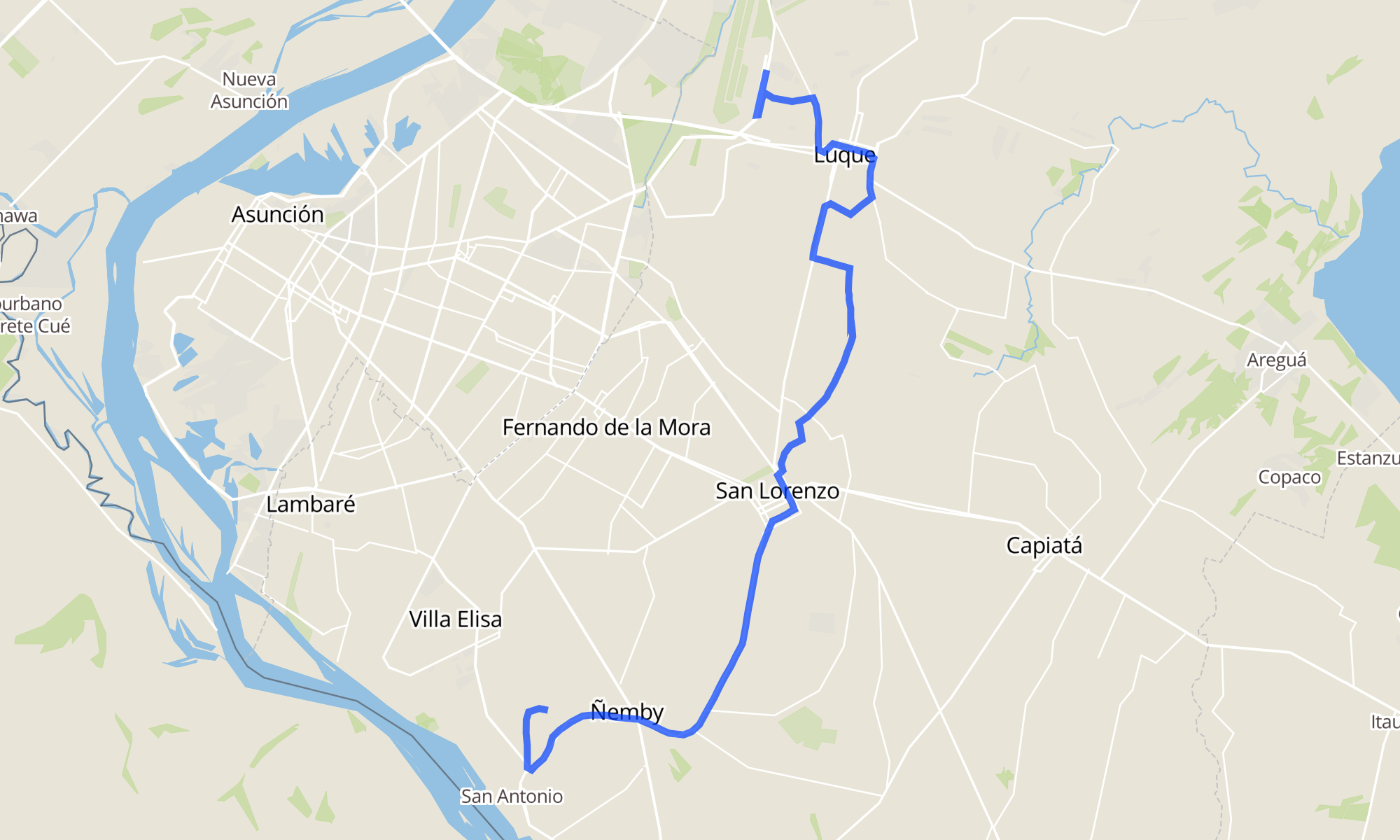 Recorrido de la línea 2: Luque - Ñemby