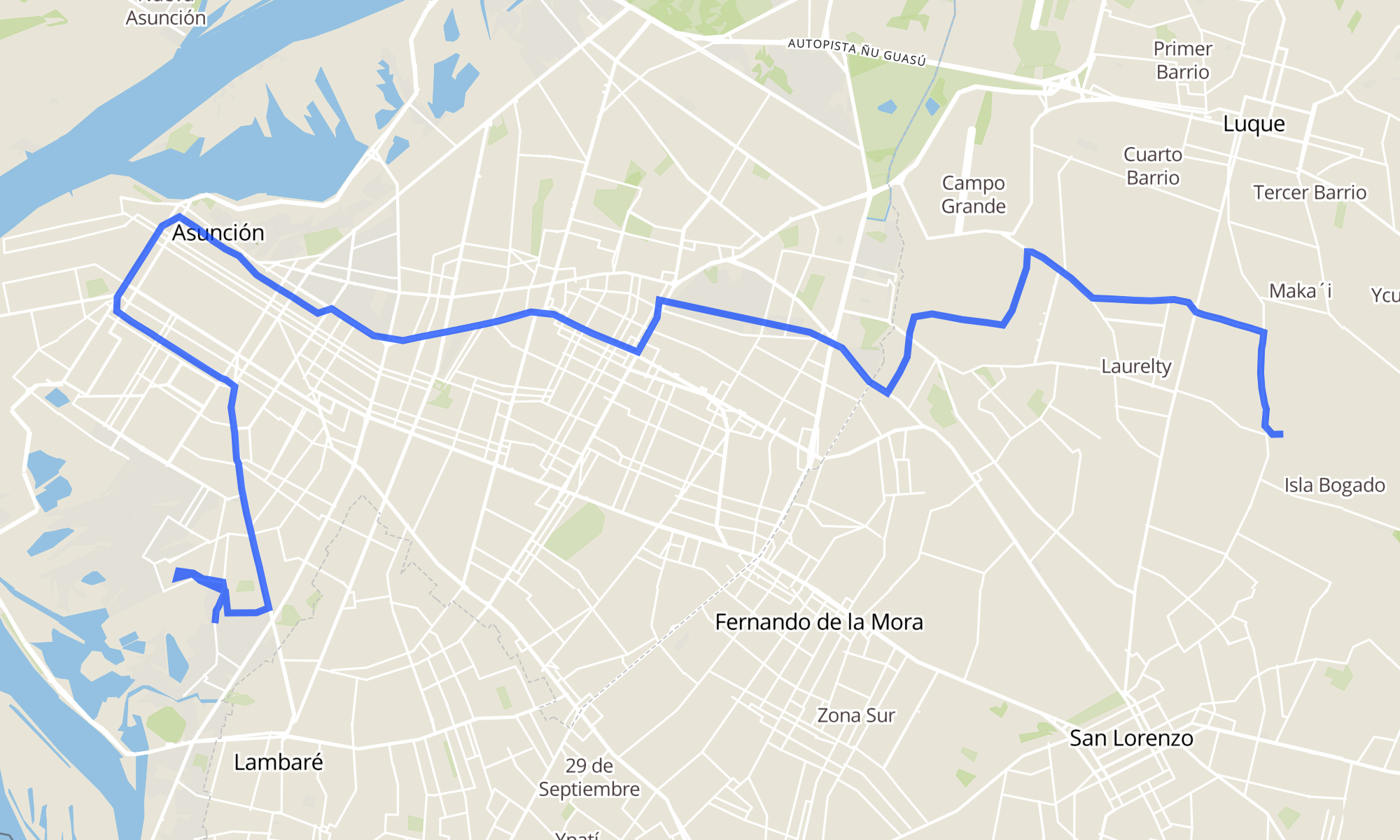Recorrido de la línea 12: San Lorenzo - Molino - Asunción