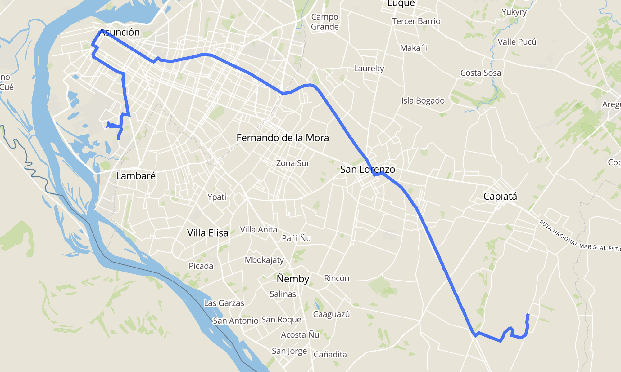 Recorrido de la línea 43: VILLA KM 23 RUTA 1 - J.A.SALDIVAR