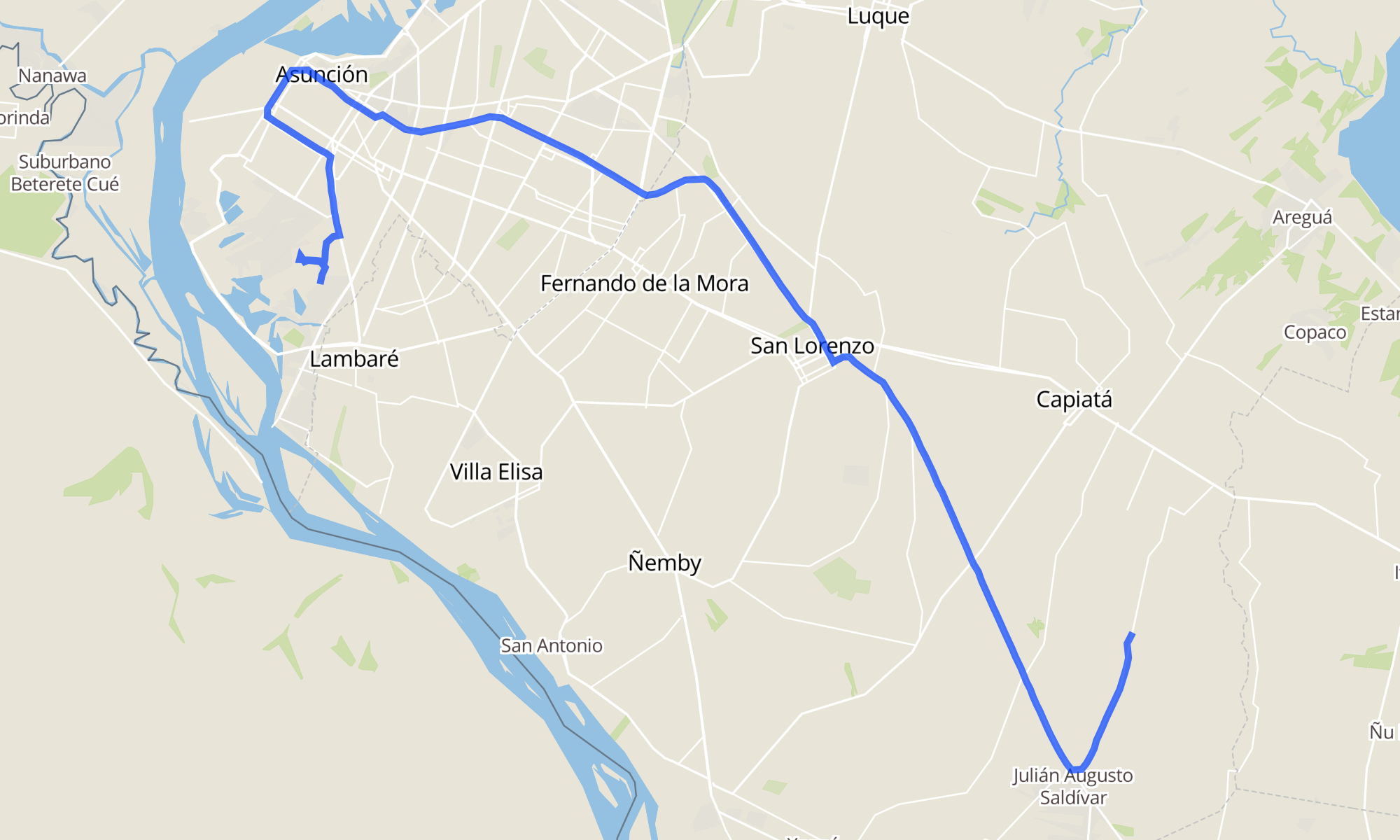 Recorrido de la línea 43: TOLEDO KM 26 RUTA 1 - ASUNCIÓN