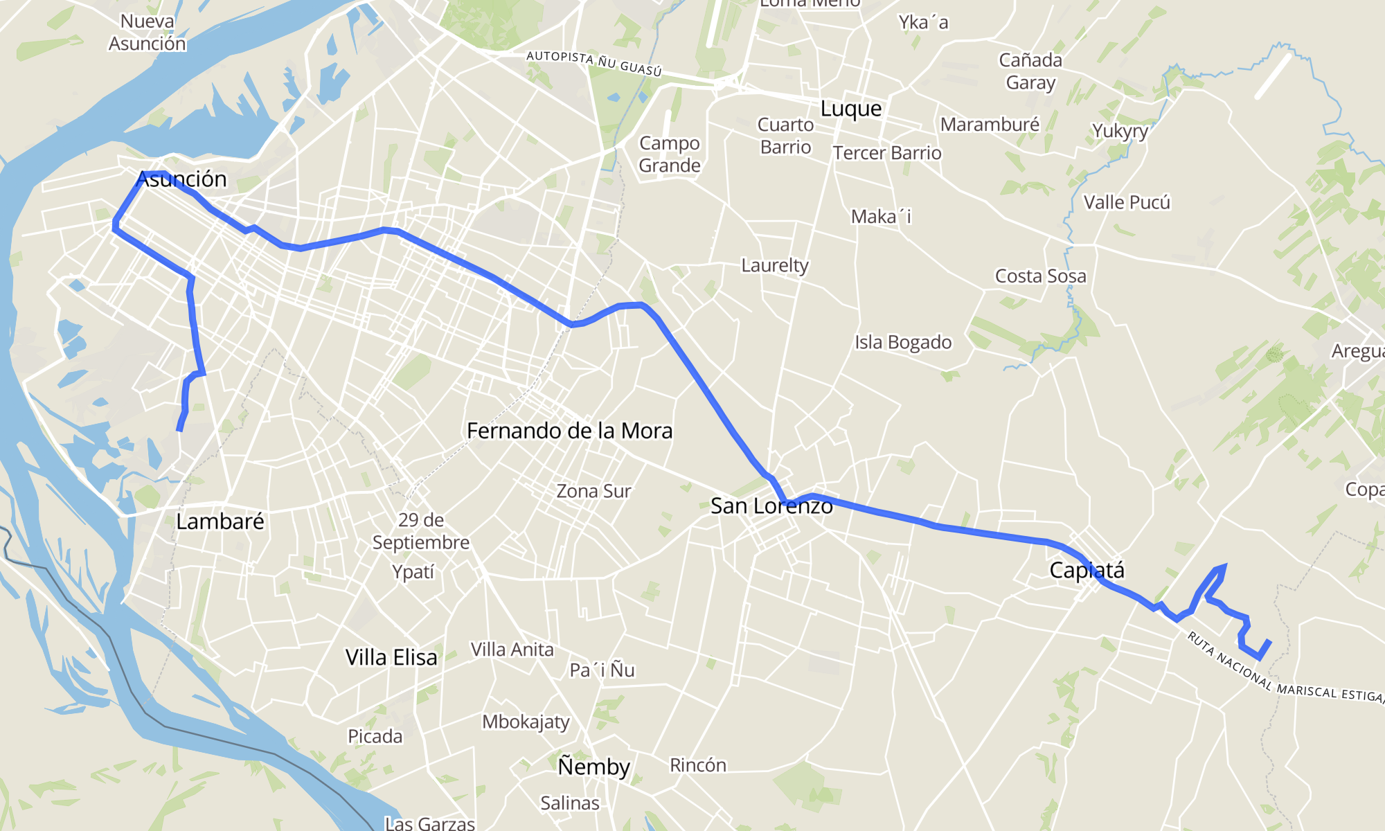 ¿A qué hora pasa? Descarga la app desde aquí para conocer cuándo viene el recorrido CAMPO VERDE RUTA 2 - ASUNCIÓN de la línea 43, su frecuencia y horarios en tiempo real gracias a la comunidad de usuarios.