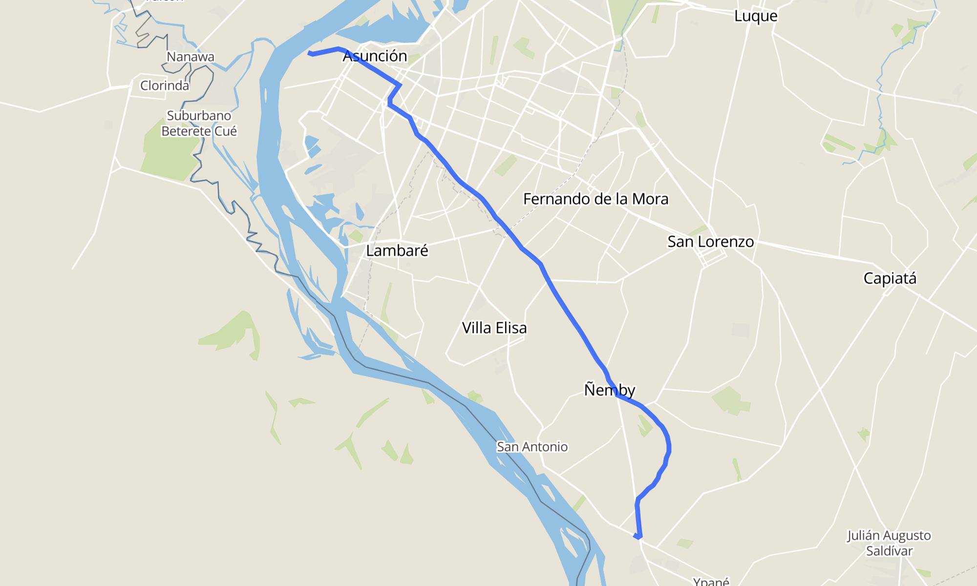 Recorrido de la línea 15-2: Ñemby - Caaguazú - Asunción
