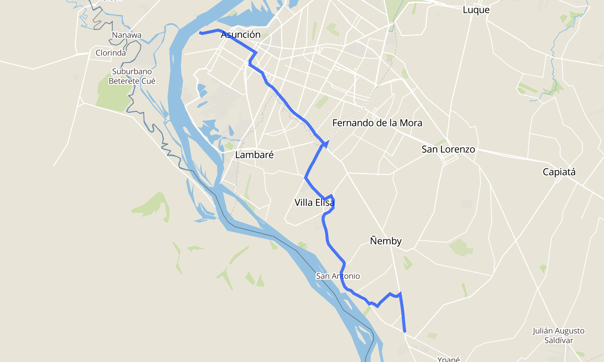 Recorrido de la línea 15-4: San Antonio - Asunción