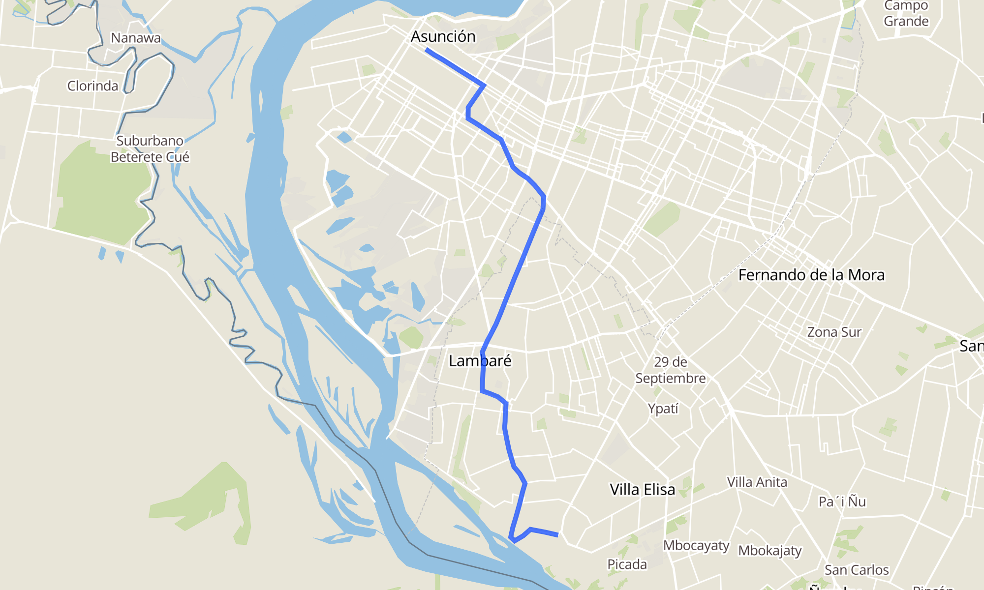 Recorrido de la línea 33: PTO. PABLA - MERCADO 4 - ASUNCION