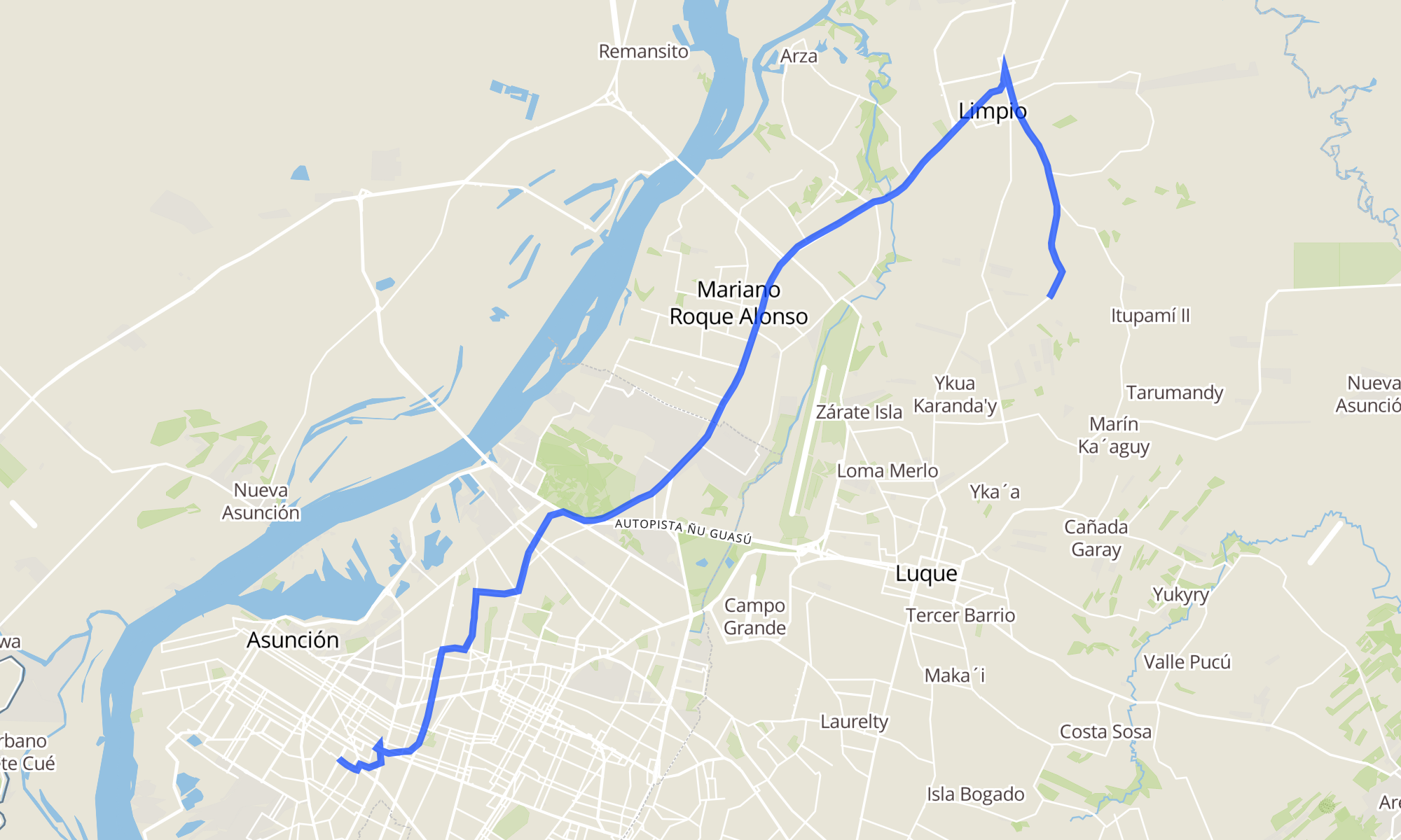 Recorrido de la línea 34: COLONIA - ASUNCIÓN