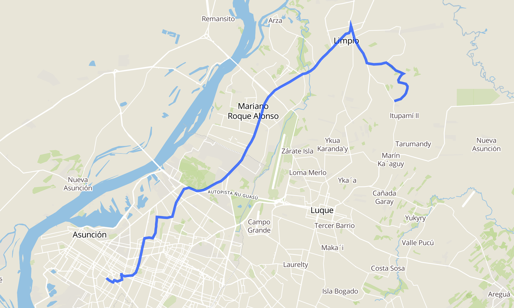 Recorrido de la línea 34: DON BOSCO - ASUNCIÓN