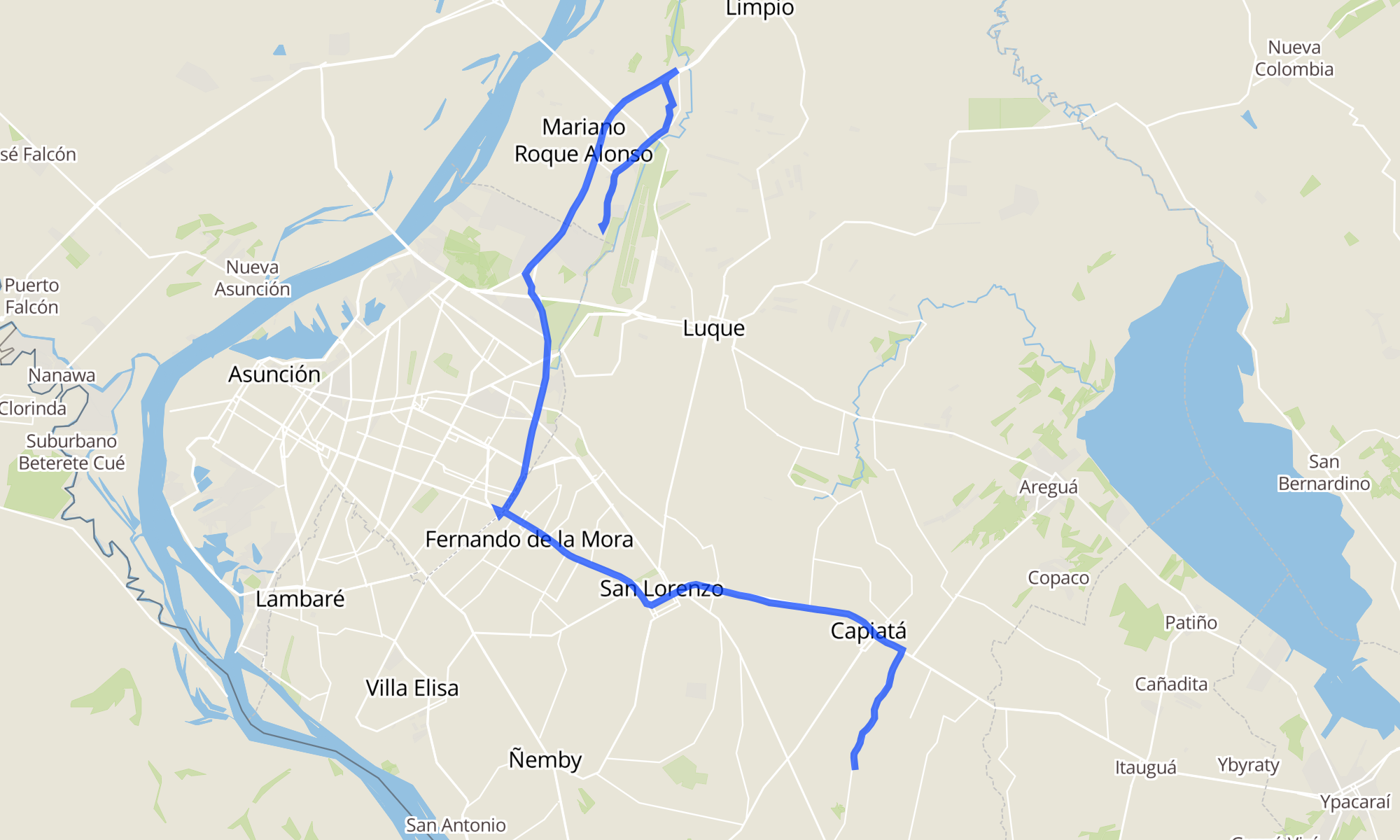 Recorrido de la línea 58: ROJAS CAÑADA - CAPIATA