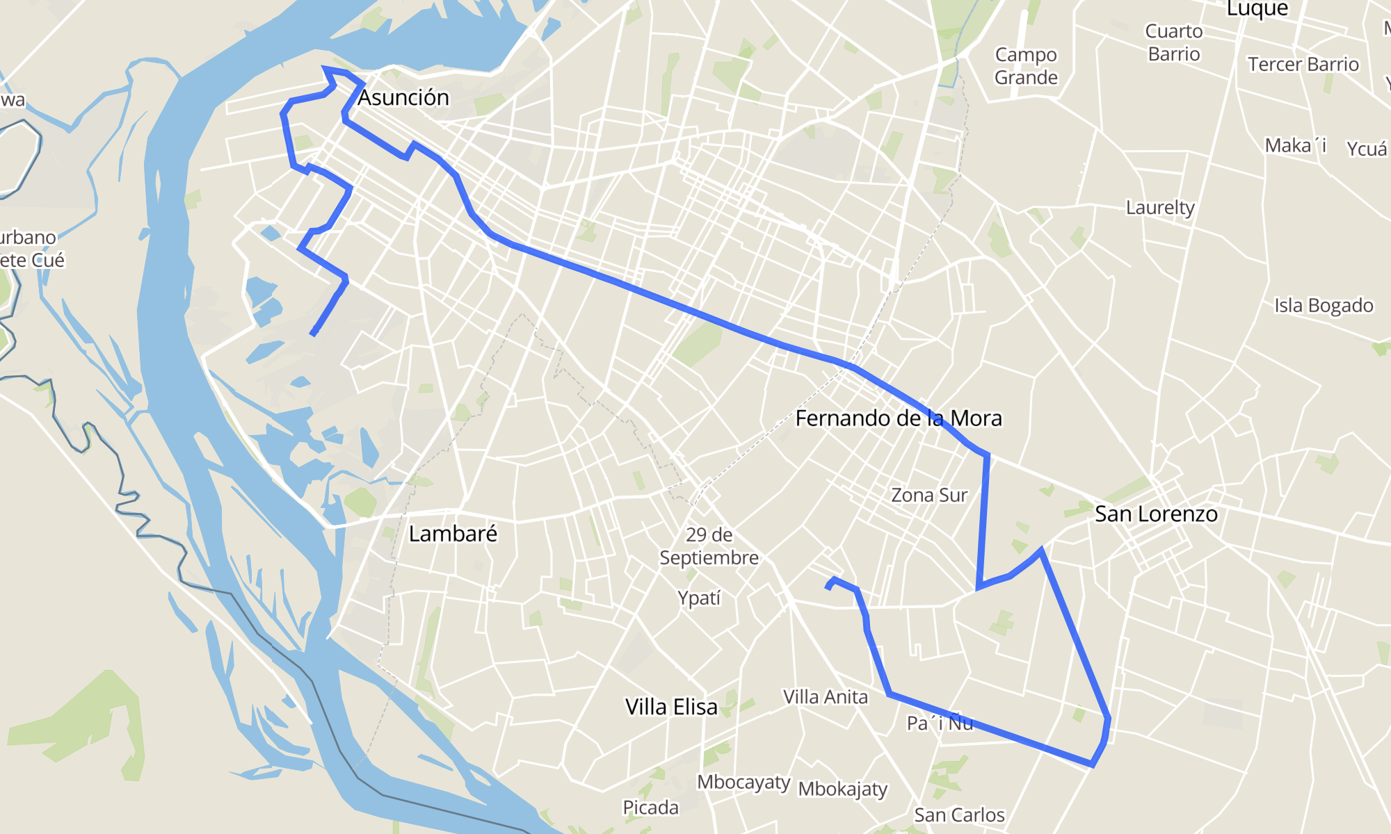 Recorrido de la línea 96: Asunción - Fernando de la Mora