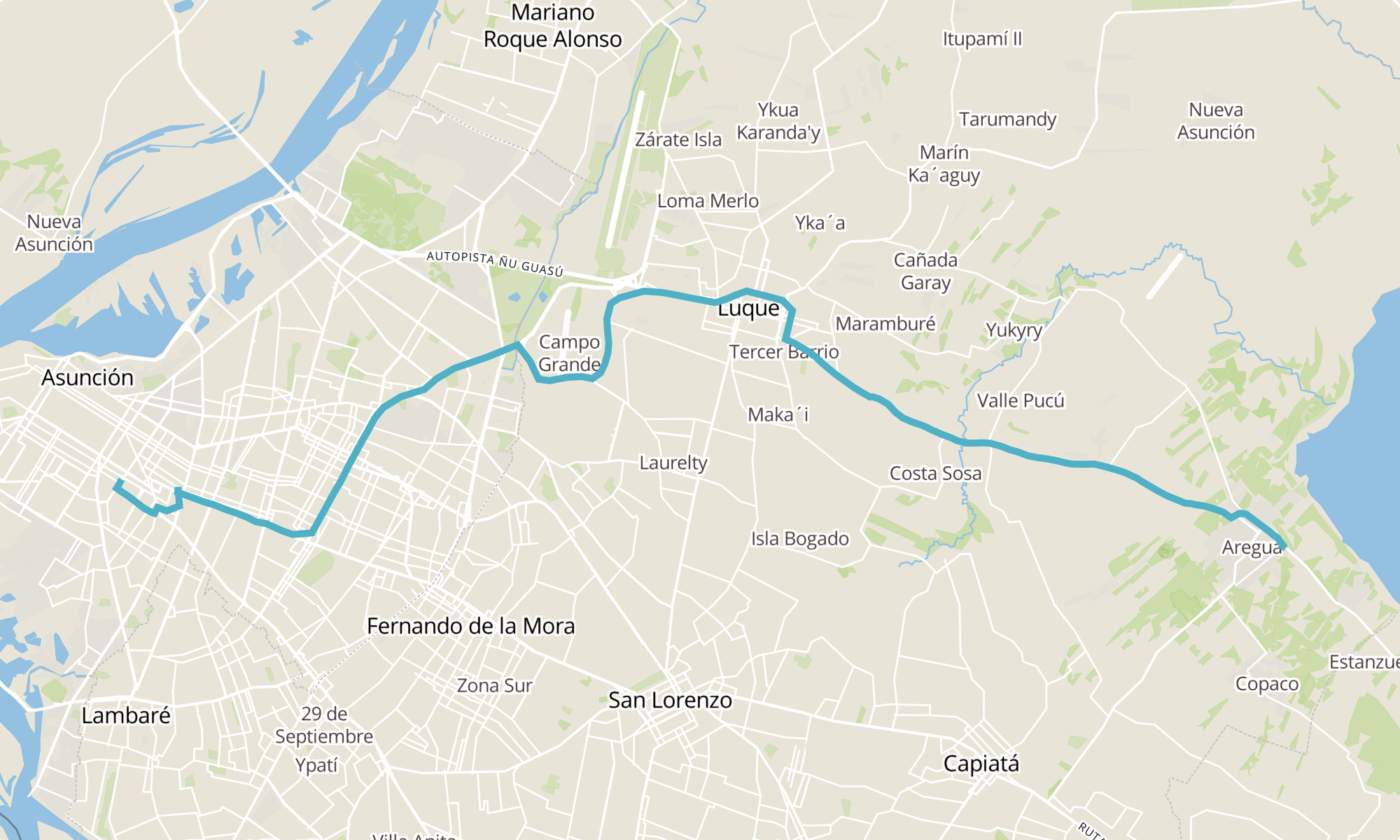 Horarios y paradas de la línea 110: Recorrido Areguá - Asunción