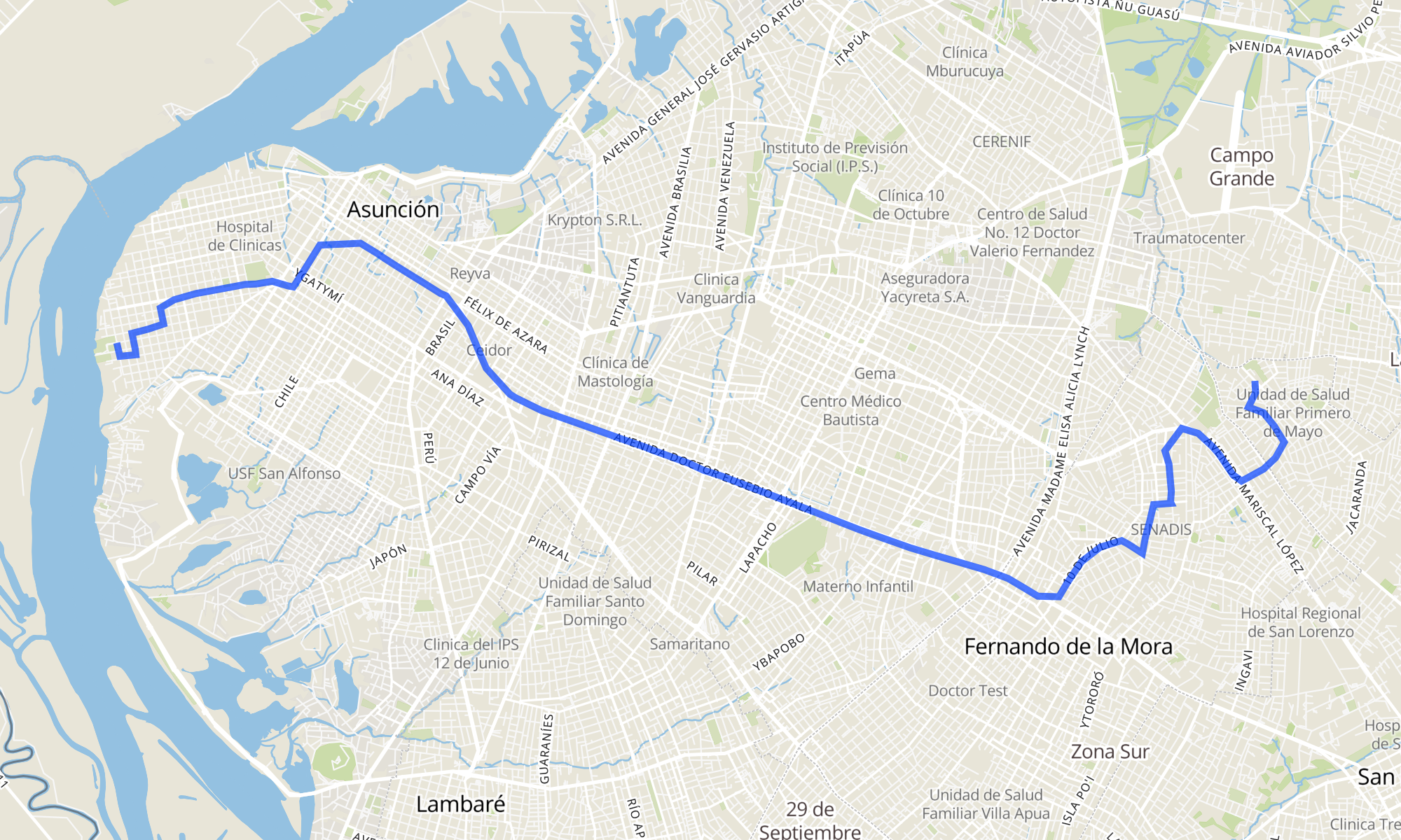 Recorrido de la línea 21: Asunción - Fernando de la Mora - IPVU
