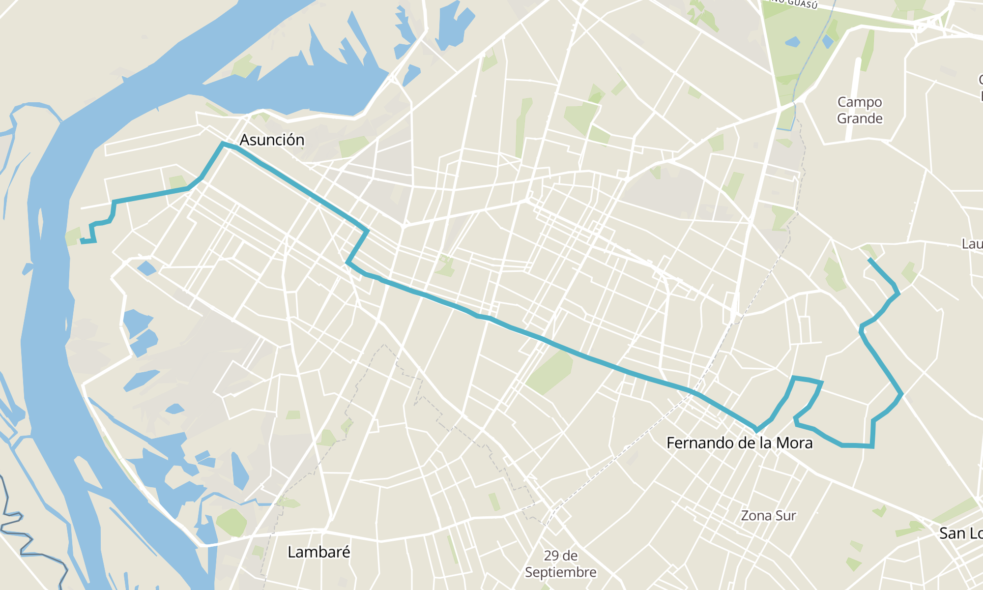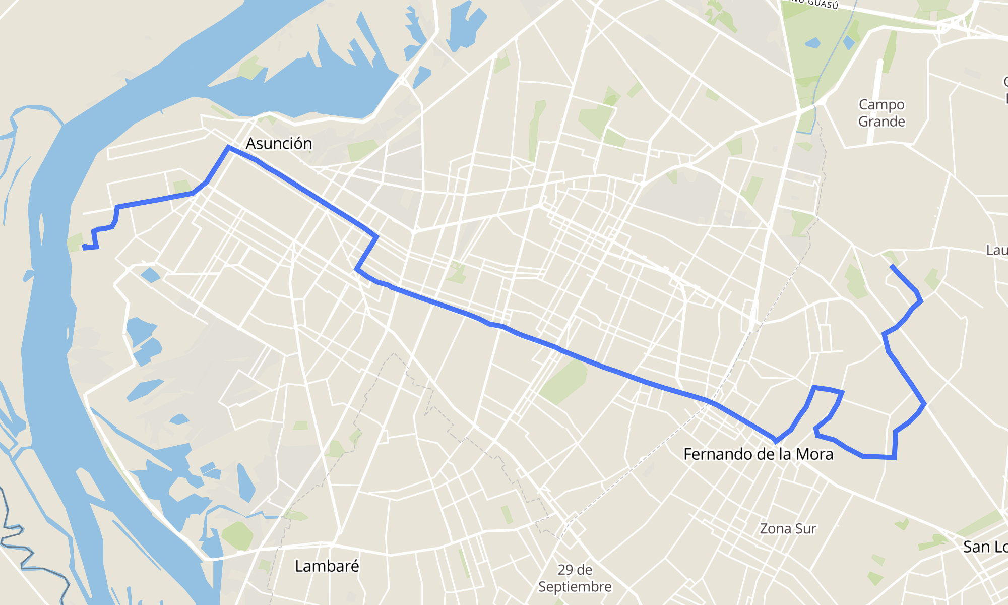 Recorrido de la línea 21: Zona Norte - Fernando de la Mora - Asunción