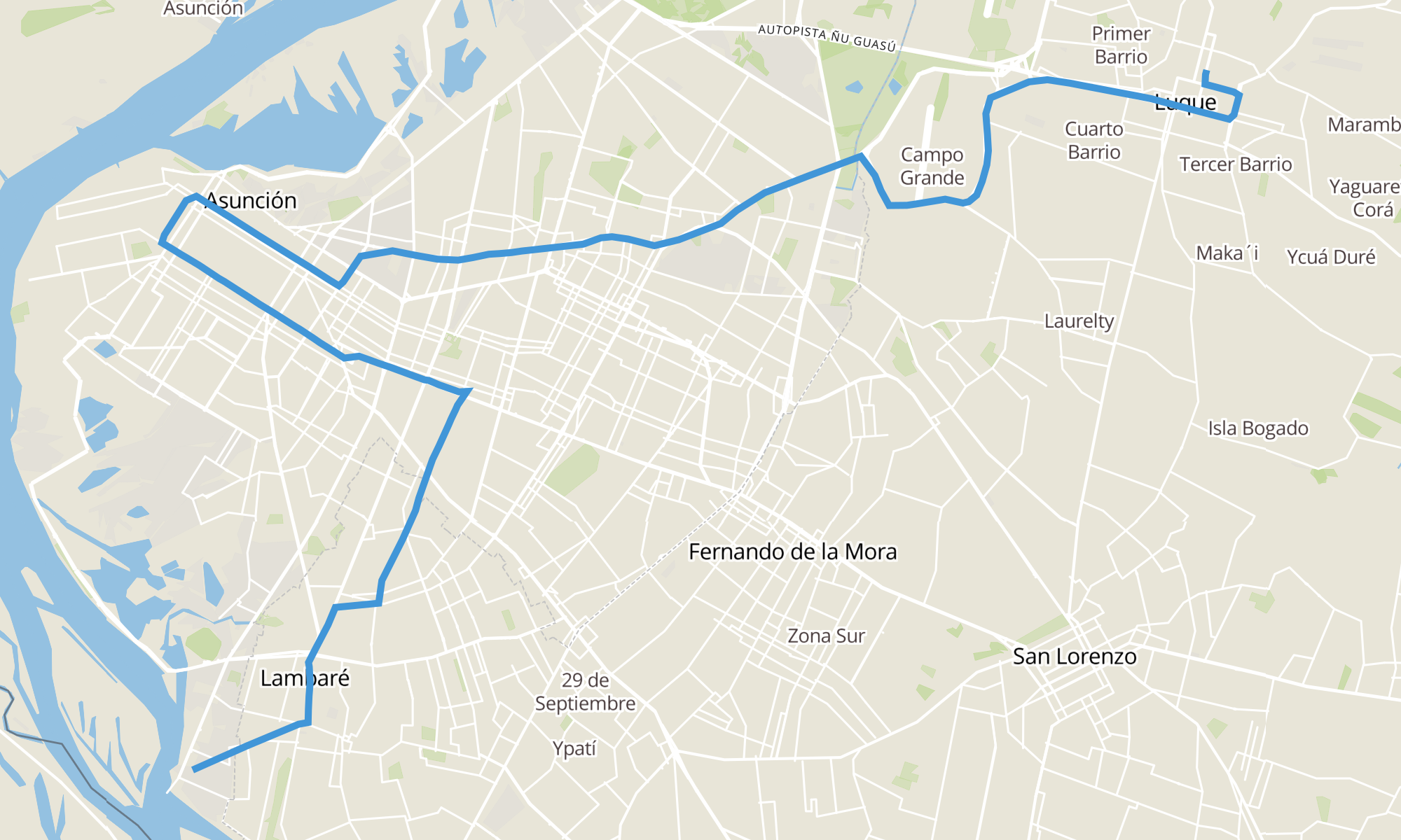 Recorrido de la línea 30-2: Lambaré - Luque