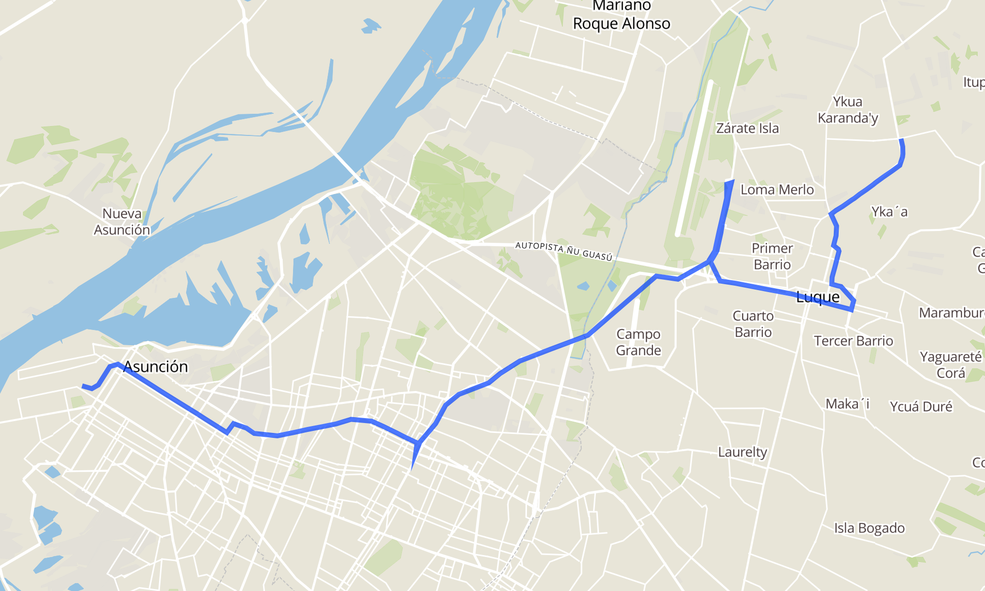 Recorrido de la línea 30-5: Asunción - Aeropuerto - Luque