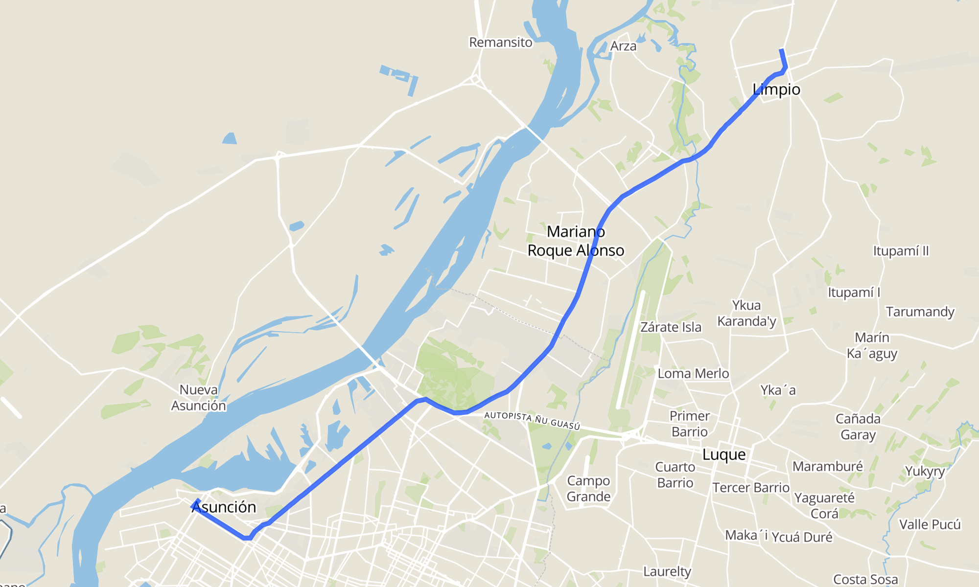 Recorrido de la línea Búho 2: Limpio - Asunción