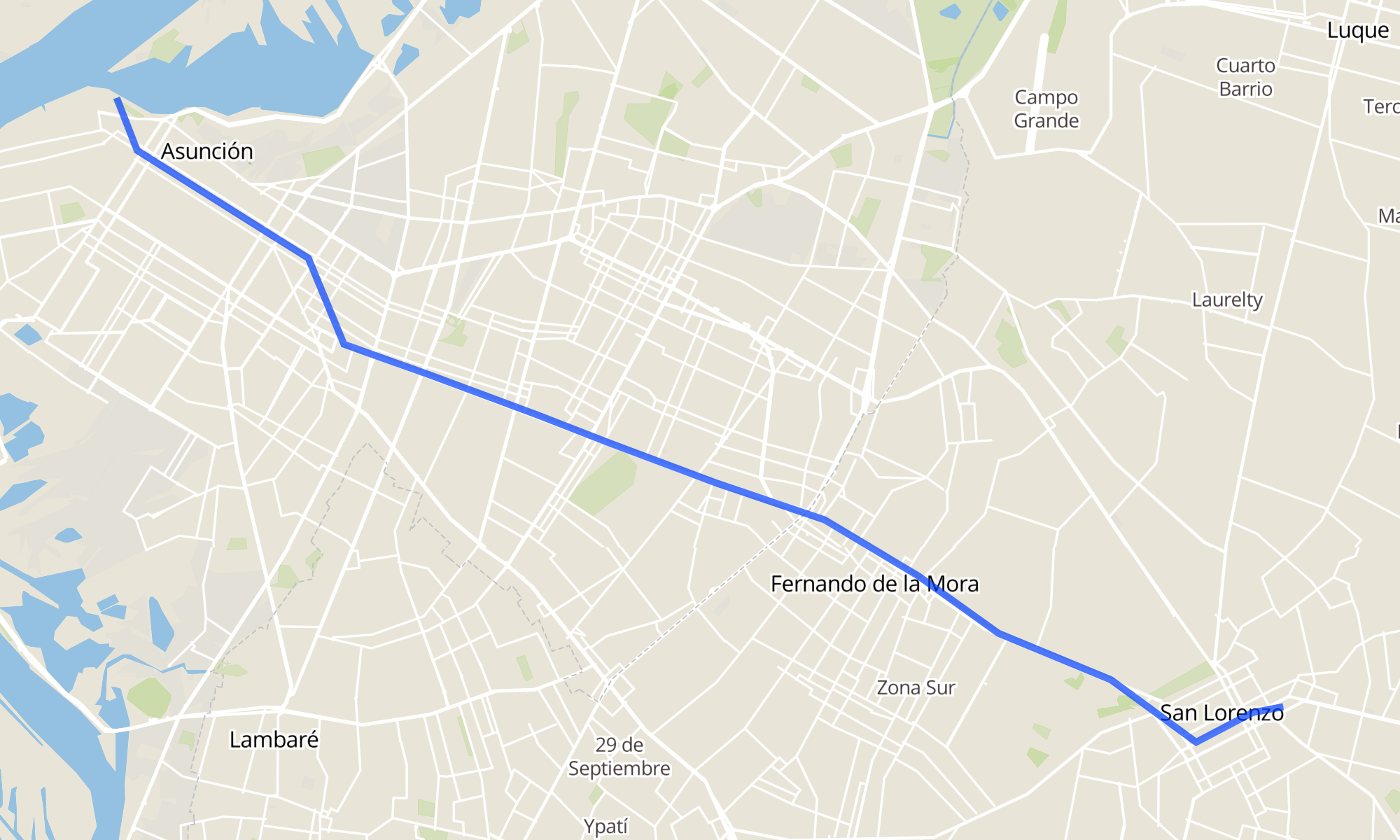 Recorrido de la línea E1: San Lorenzo – Asunción