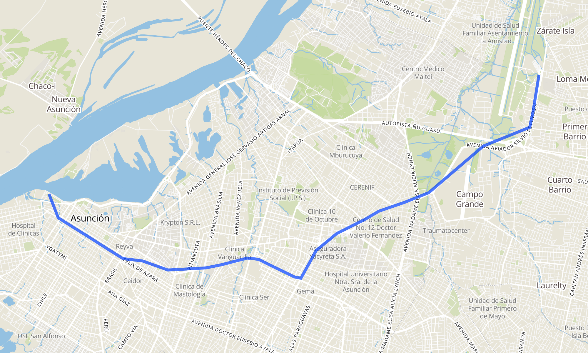 Recorrido de la línea E3: Aeropuerto – Luque – Asunción