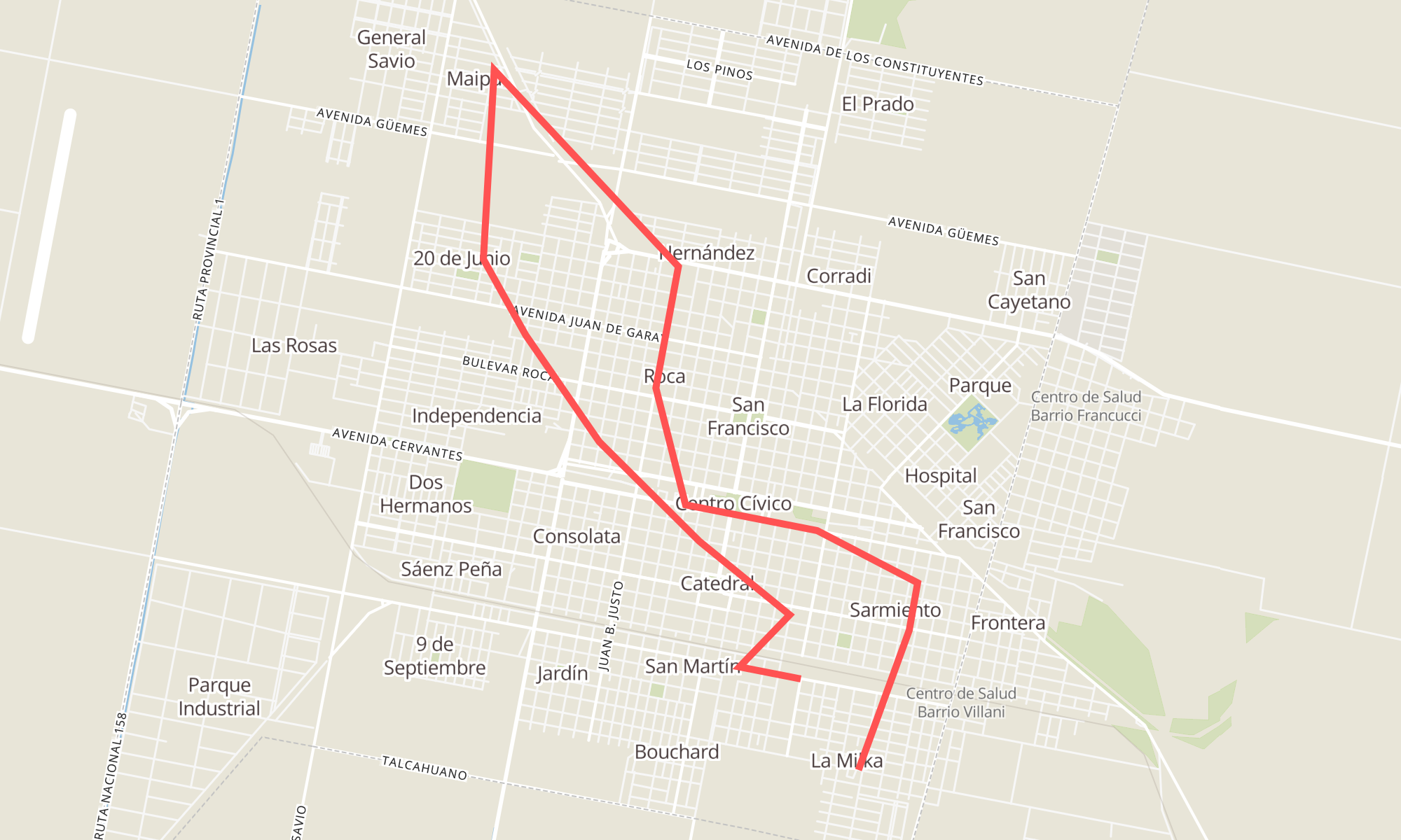 Recorrido de la línea B: De B° Maipú a B° La Milka